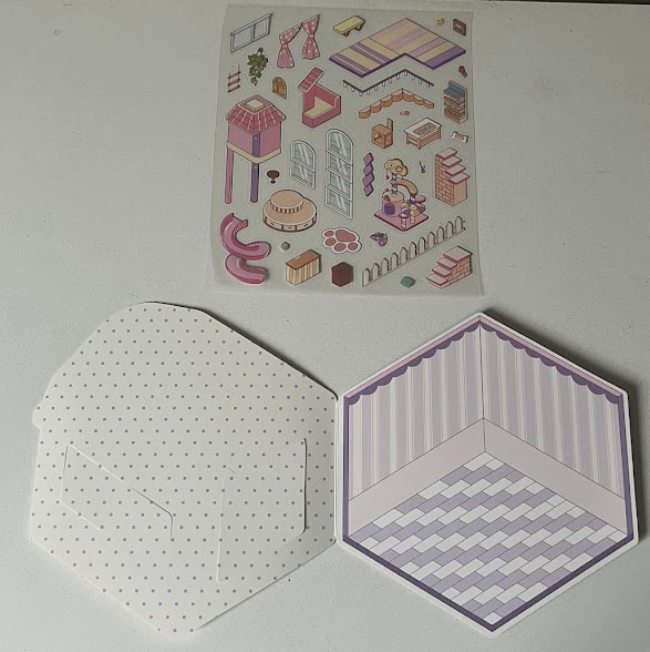 Escena para armar con tapa + 2 planchas de sticker. Medidas aproximadas 21 cm * 15 cm. Colores según disponibilidad.