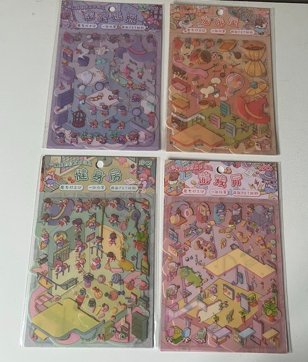 Escena mini + 2 planchas stickers. Medidas aproximadas 19 cm * 13 cm. Motivo según disponibilidad.