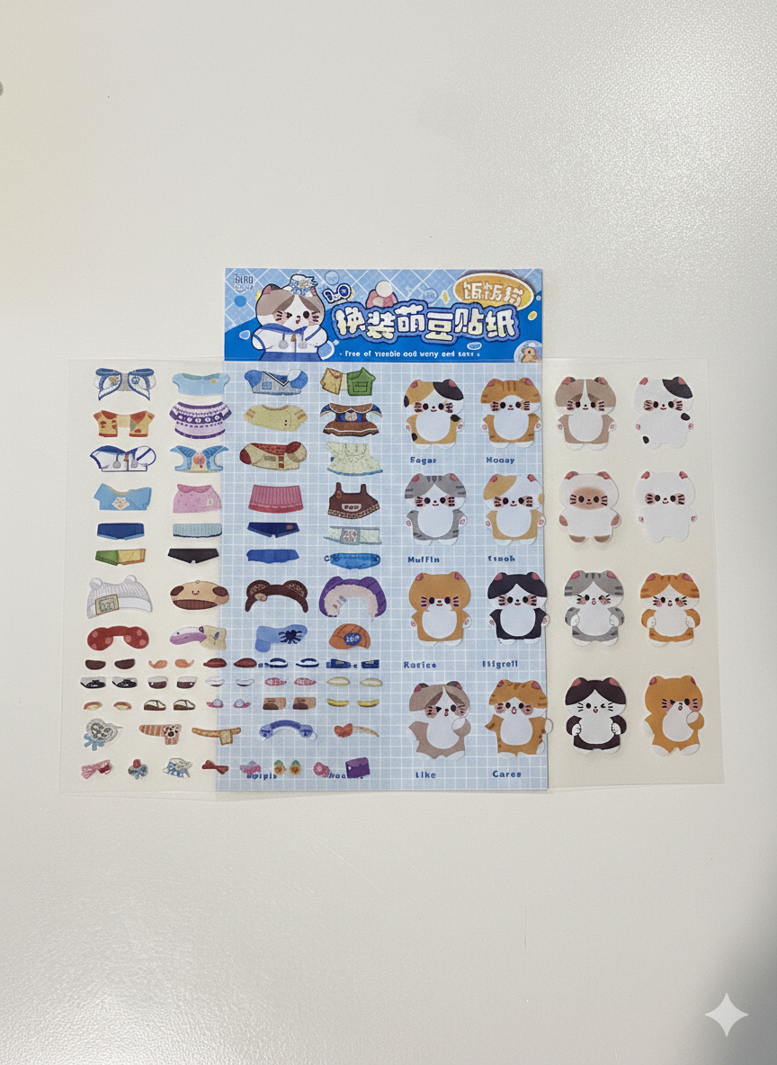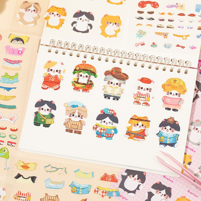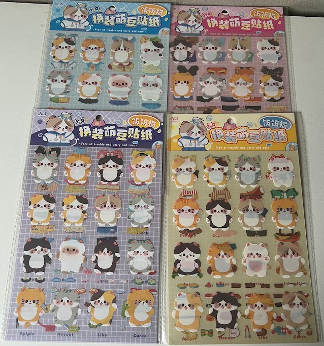 Sticker para armar y vestir gatitos. Colores según disponibilidad. Medidas aproximadas 15 cm * 25 cm.
