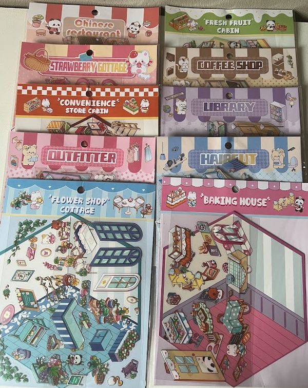 Escenas para armar diferentes comercios según disponibilidad. Medidas aproximadas 20 cm * 16 cm. Contiene 1 escena + 2 planchas de stickers.